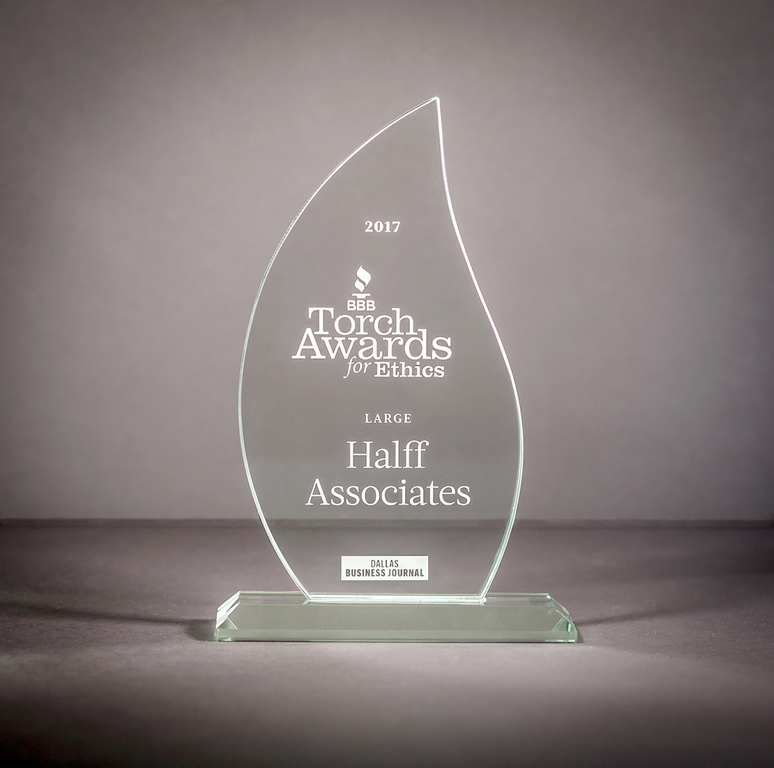 Ethics have been an integral part of Halff Associates since Dr. Albert H. Halff opened a one-room office in Dallas’ Snider Plaza 67 years ago. For proof that ethics are still as important as ever within the firm, look no further than Halff’s Torch Awards for Ethics honor received from the Better Business Bureau and Dallas Business Journal in September.