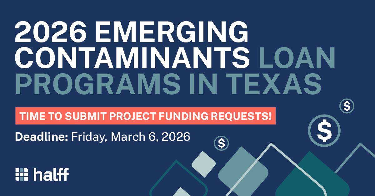 The Halff team includes PFAS professionals who can help navigate regulations and identify solutions for water and wastewater contamination, while our Funding Resources team can help put together winning applications for the CWSRF- and DWSRF-EC programs.