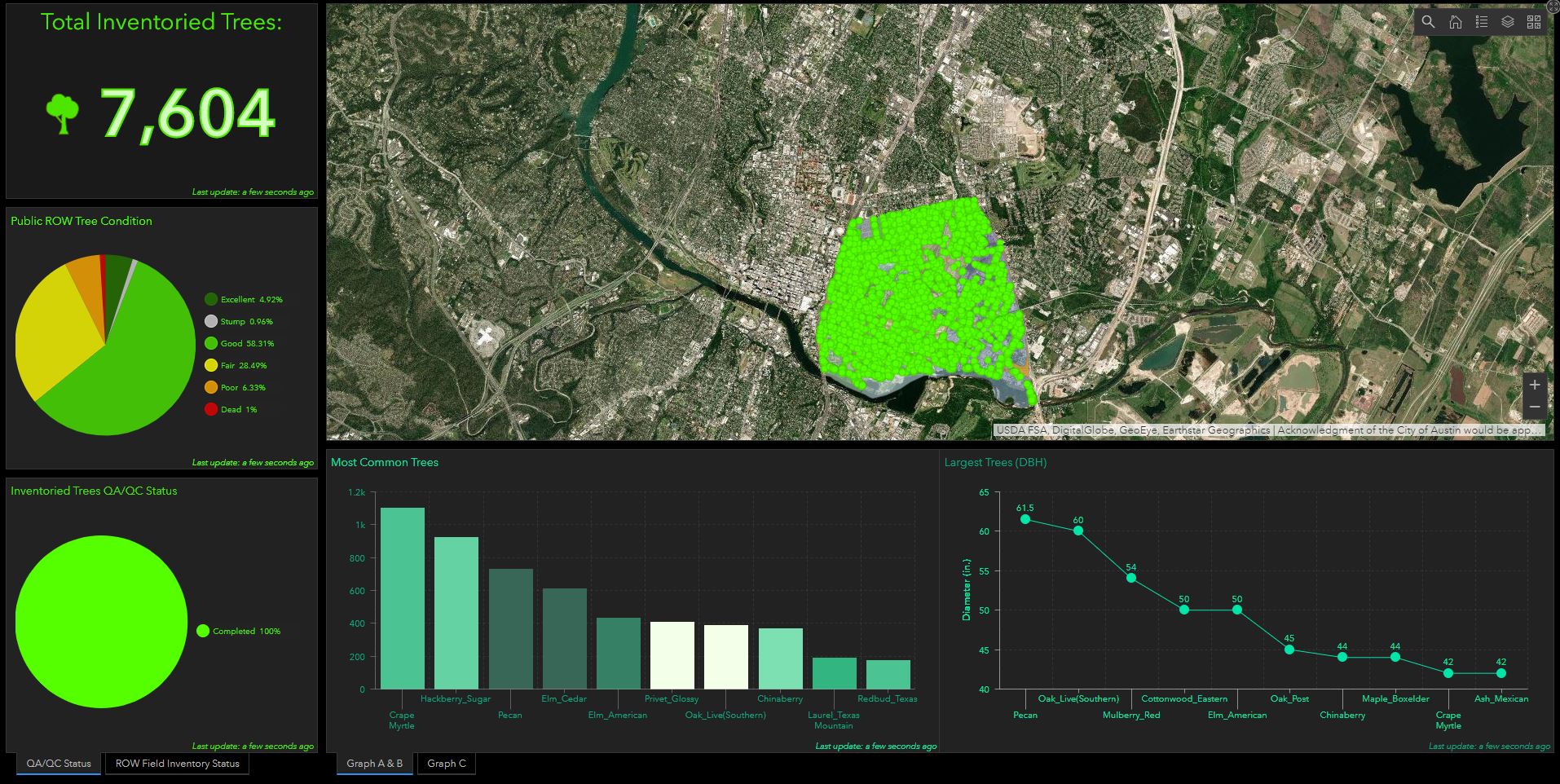 A project tracking dashboard was developed and deployed through ArcGIS Companion, allowing Halff and City staff to review inventory data in real time and evaluate statistics during the initial phase. An analysis of the vegetation structure, function and value was also performed using an ecosystem service analysis tool. Having that information, too, will promote more knowledgeable management decisions.